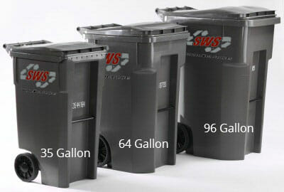 Monthly trash charges are based on cart size – 35 gallon, 64 gallon and 96 gallon.